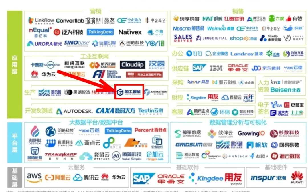 近日,艾瑞咨詢出具了一份中國企業數字化轉型路徑的報告《2020年中國企業數字化轉型路徑實踐研究報告》,該報告主要講述企業數字化轉型核心本質、企業數字化轉型集中問題、企業數字化轉型的推薦路徑三個方面。報告中,艾瑞咨詢研究院依據企業數字化轉型服務的細分領域實力做出了《企業數字化服務產業圖譜》,將國工智能定義為國內企業數字化服務產業一線供應商。