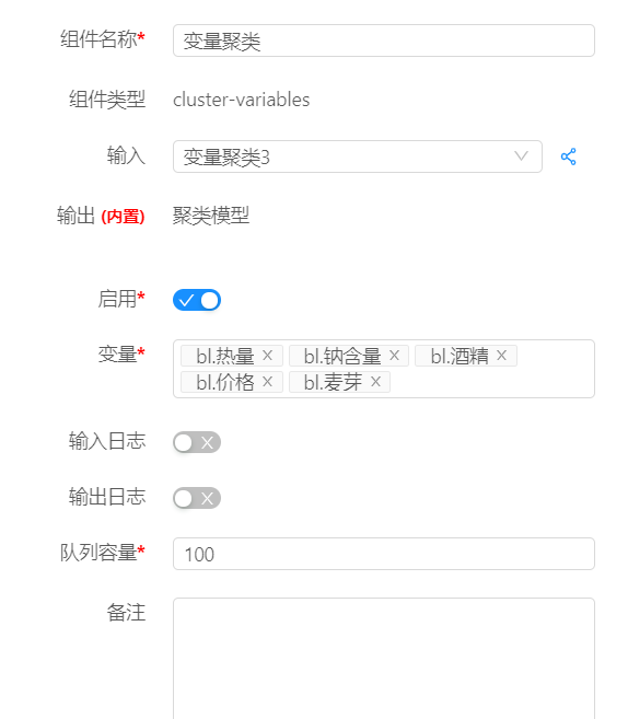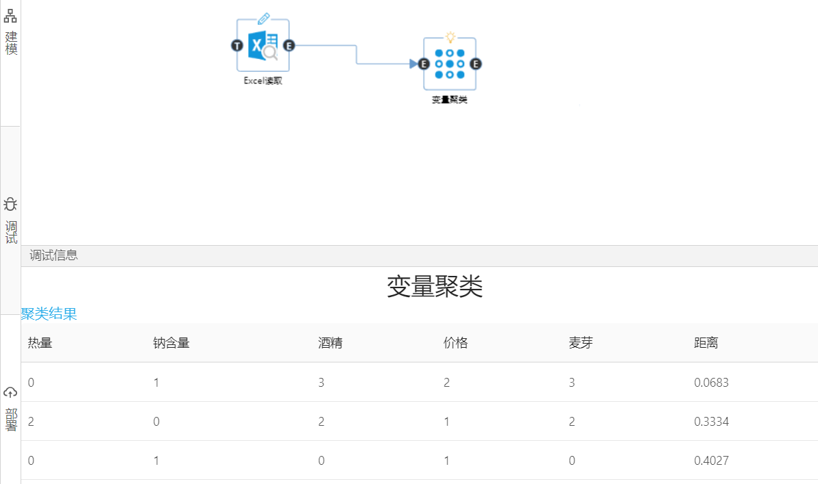 從數(shù)據(jù)大腦中的組件面板查找變量聚類組件,拖到到工作面板,配置數(shù)據(jù)源以及變量聚類組件參數(shù),點擊運行。