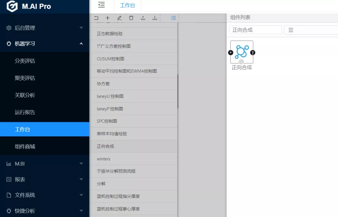 首先,打開國工數(shù)據(jù)大腦平臺。依次進(jìn)行操作:機(jī)器學(xué)習(xí)-->工作臺—>新建正向合成計(jì)算流程—>拉取正向合成組件(圖1)
