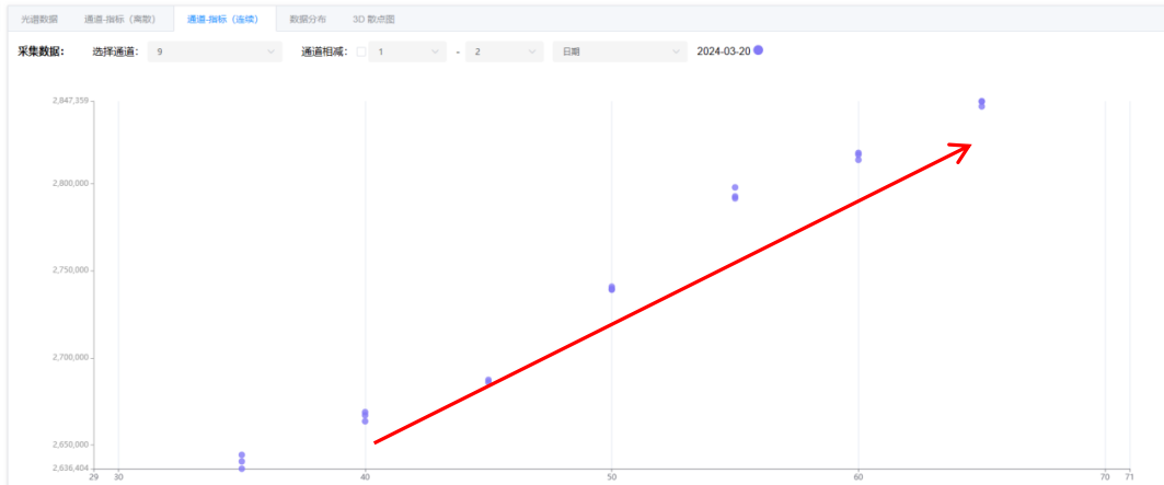 圖5.乙二醇含量9通道落點(diǎn)圖