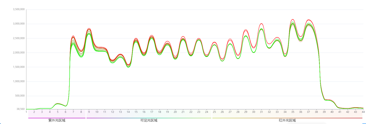 吸收強(qiáng)度圖譜,橫軸為波長通道,縱軸為當(dāng)前物料各波長通道的光吸收強(qiáng)度。