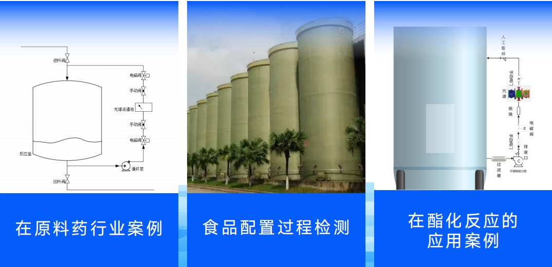 在線光譜傳感器對安裝于旁路管道進行在線檢測或者抽樣檢測,檢測固體雜質較少的液體,主要應用反應釜的反應過程檢測、罐區檢測和公用工程液體介質檢測。